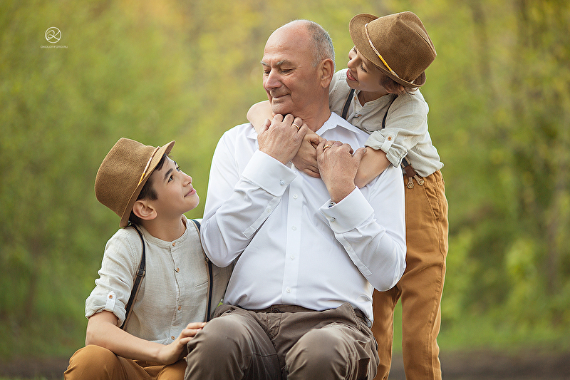 На днях фотографировала свою маму с внуками.