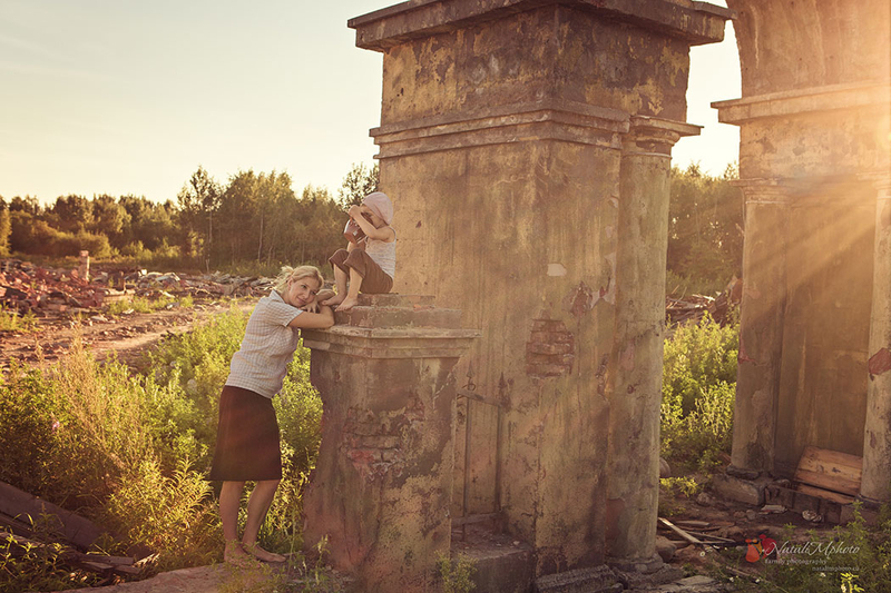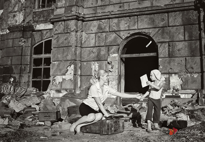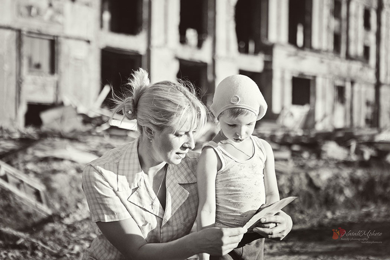 Это не обычная семейная фотосессия, к которым мы привыкли. Мы выбрали необычное место, герои в нарядах, оставшихся от бабушек и хранящих историю того времени. Мы пытались воссоздать послевоенное время. Буду благодарна любым комментариям)